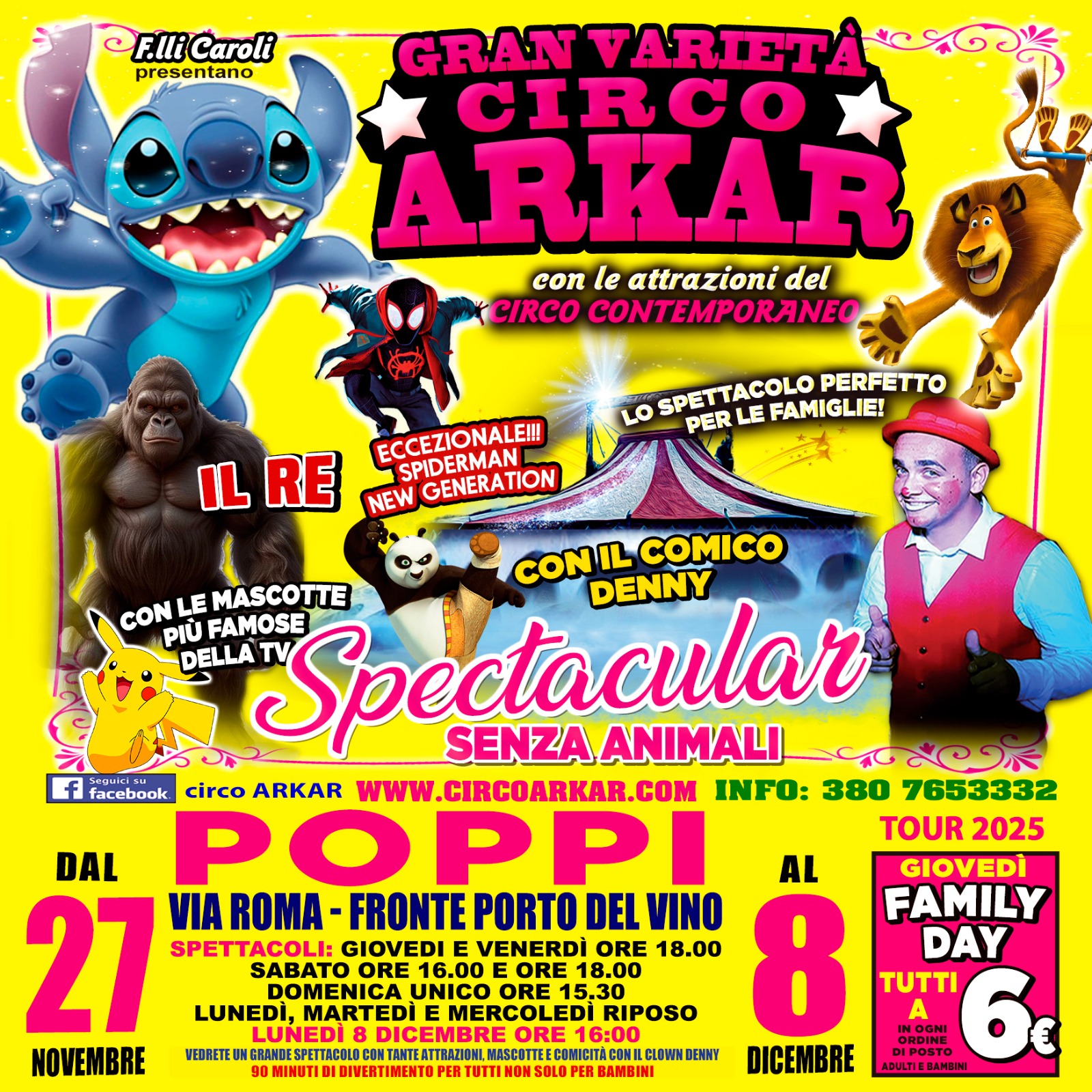 Circo Arkar è un circo unico nel suo genere, specializzato in spettacoli circensi con le mascotte più amate della TV. La nostra missione è di portare allegria e divertimento senza l'uso di animali, offrendo uno spettacolo adatto a tutta la famiglia. Un'esperienza indimenticabile che unisce arte, acrobazie e personaggi amati dai bambini.